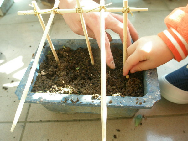 幾個月前,賢子把一顆綠豆種在陽台的小盆子裏