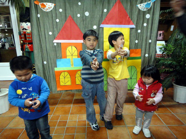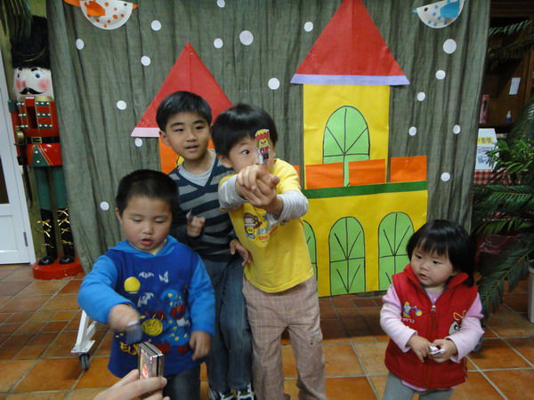 說完了好聽的灰姑娘故事,開始有獎徵答活動, 賢子不停邊跳邊把手舉得高高的,回答的挺積極...