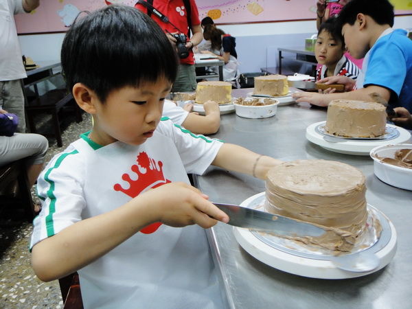 來到了DIY教室,小朋友們開心的咧,穿起了圍裙,洗手做蛋糕...