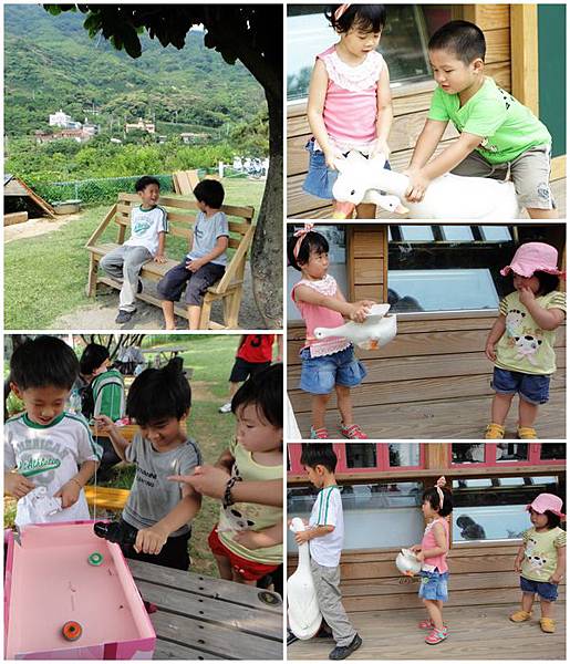幸好午后天氣有點陰陰的,就帶著孩子們到戶外草地上玩耍,草地上有一個區塊是鵝群的地盤