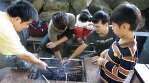 開始升火時,賢子很努力的在旁負責扇風,不過沒多久就擅離職守,跑去結交新朋友啦...