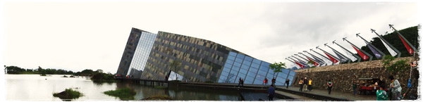 多雨的宜蘭,這幾天仍是一陣一陣的下著雨,位於烏石礁遺址旁的「蘭陽博物館」遠看起來增添了幾分矇矓美感