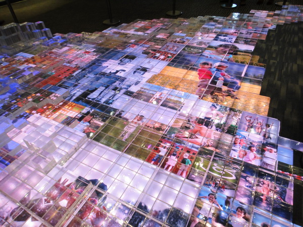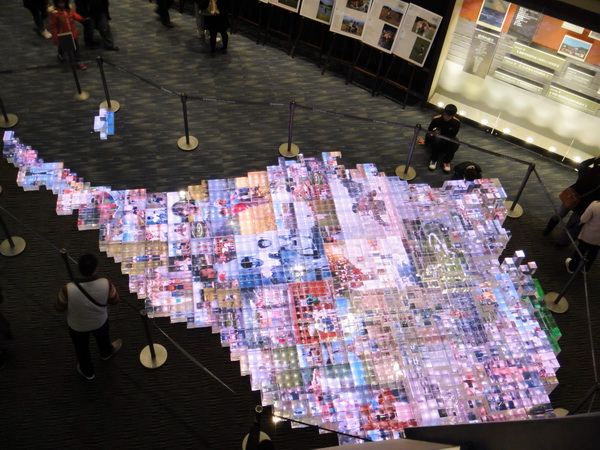從四樓一路走到了最底層的「時光廊」,運用拼貼方式,將宜蘭的風情人文拼湊出一塊宜蘭地圖
