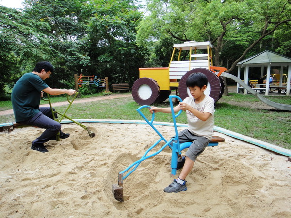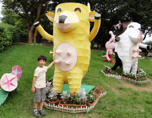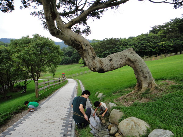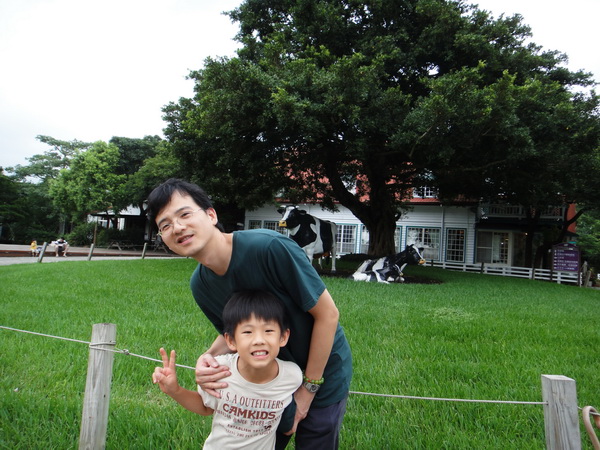 下午4點多,天氣已涼爽許多,到戶外去走走,剛走到了牧場區,志嘉弟弟不小心滑倒,沾了