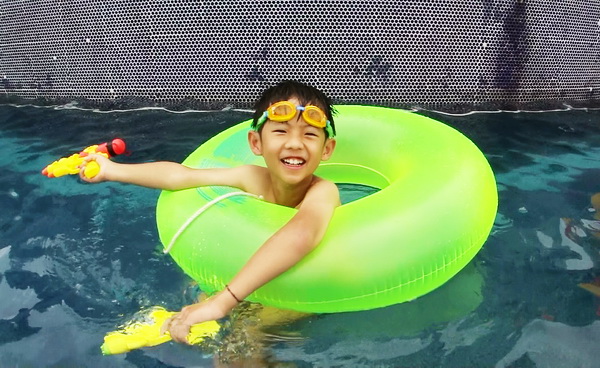 潮間帶尋寶回來後,離午餐還有一段時間,換上泳裝來去泳池戲水,當初選擇澎湖民宿