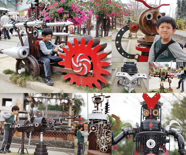 鐵園迷城~利用各式不同的鐵件,創意組合出機器人、戰車、炮台...等,真是厲害!!