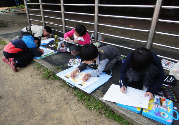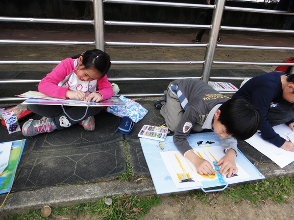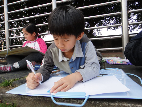 參賽小朋友遍佈校園的各個角落認真畫畫中...媽咪請了半天假也要一起感受這個氛圍...
