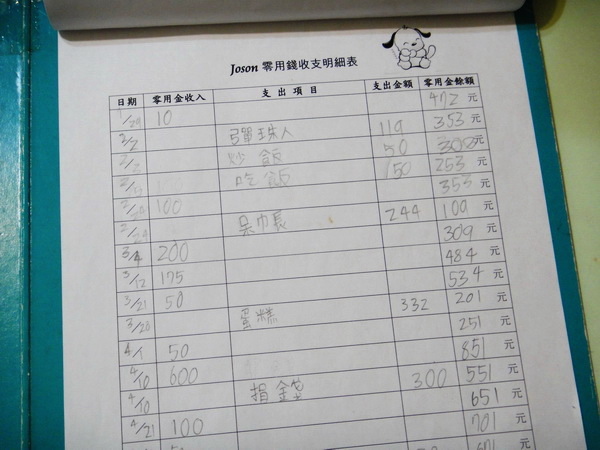 理財從記帳開始,設計了一份零用錢收支明細表,讓賢子開始記帳,管理自己的錢,當