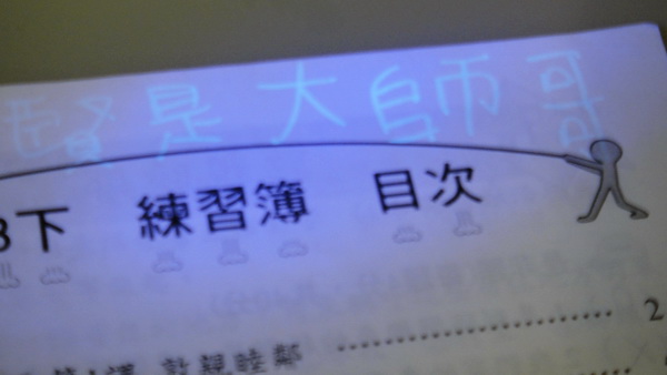 照射才會看見字,賢子神氣的寫下 XX賢是大帥哥....結果用紫外線一照,帥 寫成了 師,