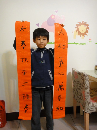 今年家裏的春聯就由 阿賢子大師哥揮毫提供~