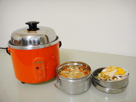 買了大同小電鍋,爸比開始帶便當去公司吃,有一回晚餐沒有剩餘太多菜,賢子小小聲跟
