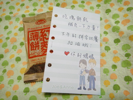 幼稚園時,總會把在學校得到的餅乾用衛生紙包回家,今天媽咪又再度拿到了