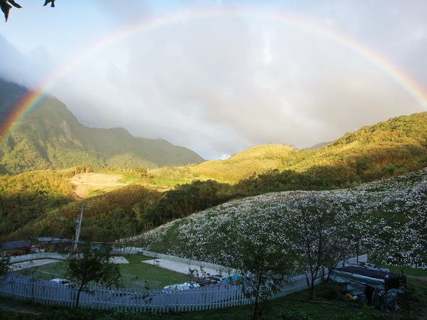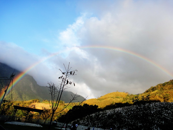 今天山上的天氣詭譎多變,陽光、烏雲、細雨、彩虹 不斷的接替出現著.......