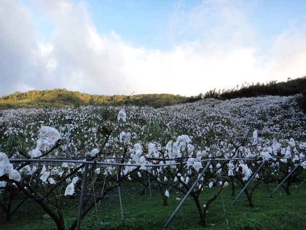 咦? 現在是五月嗎???仔細一看.....不是油桐花耶,是滿山包著一顆顆白色紙袋的甜柿!!