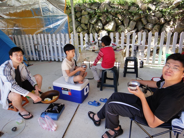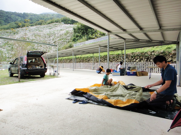 中午時分,趕緊來卸貨搭帳篷囉.............