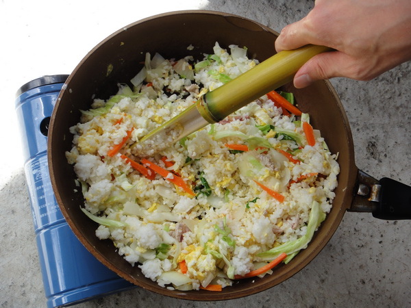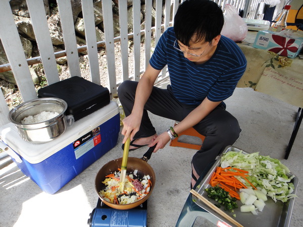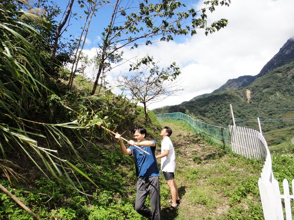 爸比和小古叔叔決定發揮 野外求生精神,到附近砍竹子,自己做鍋鏟 英雄~~~