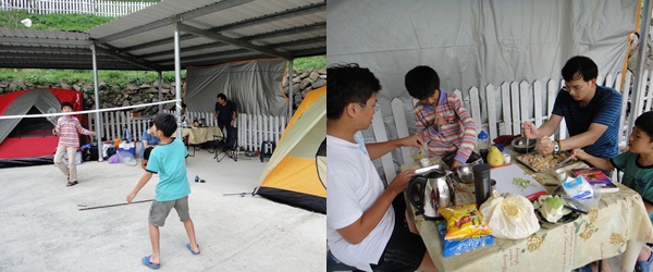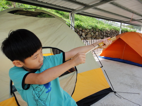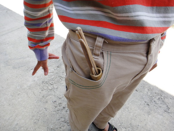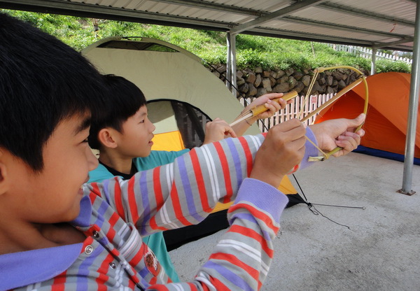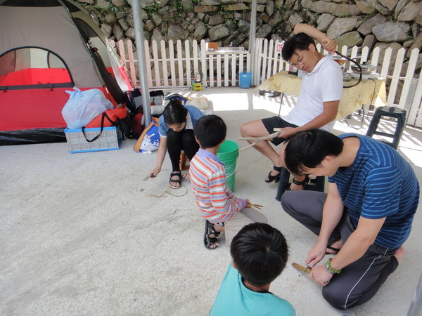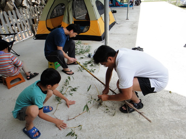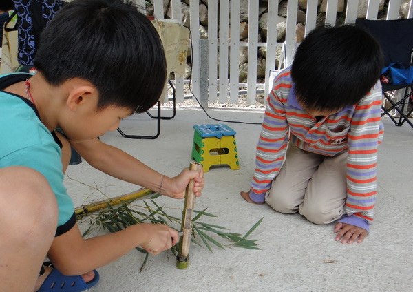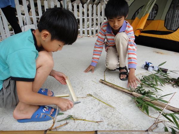 午餐後,2個小傢伙也開始有模有樣的學爸比用竹子做東西......