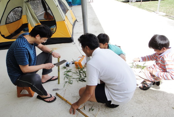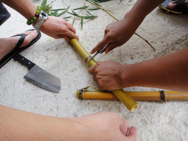 不過看他們拿刀砍竹的樣子挺讓人擔心的,還是我們大人來做,小朋友負責玩吧..........