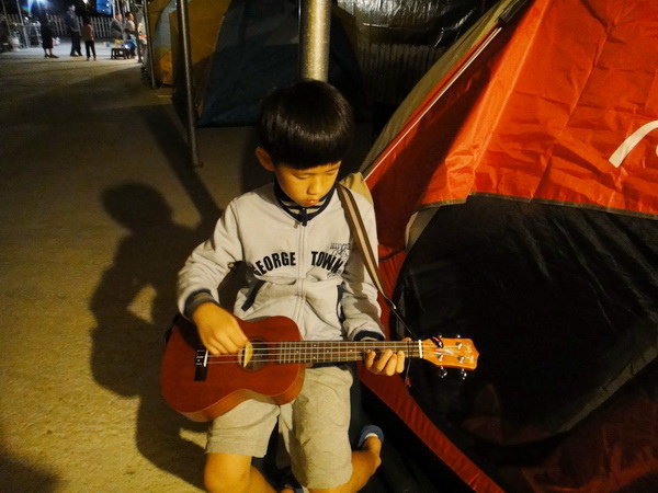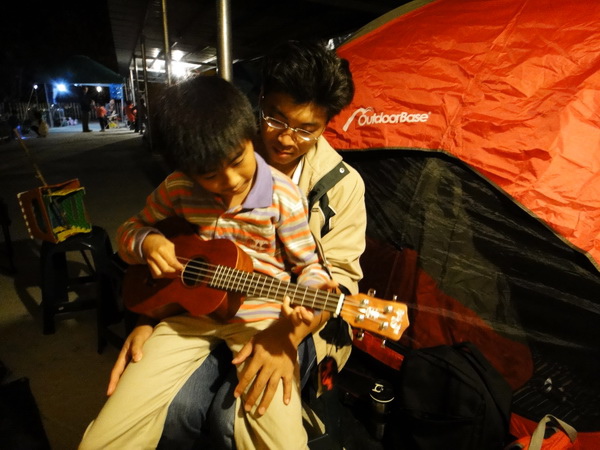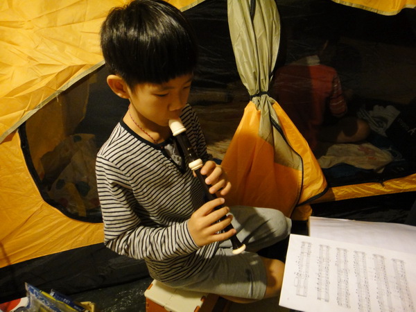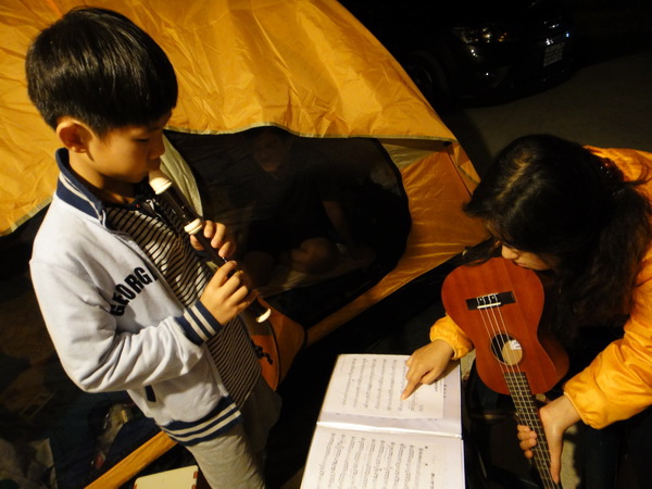 今天的夜晚充滿著音樂的旋律,我們剛好都各自帶了樂器,小古家正在學彈烏克麗麗,
