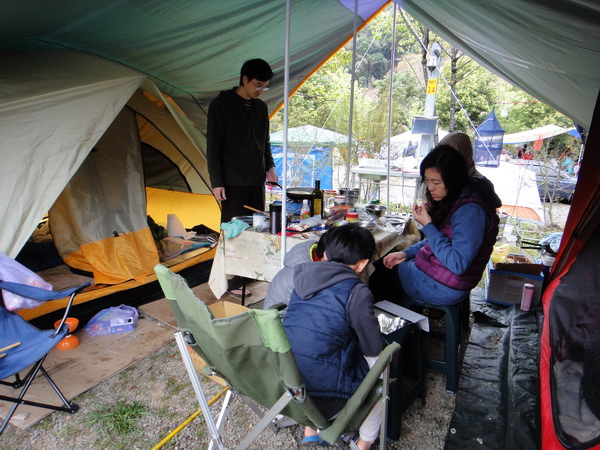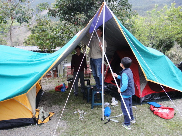 到了田中營地已經下午三點多,趕緊紮營囉....這次利用2個天幕帳結合在一起,即可以