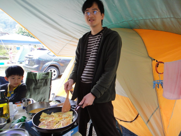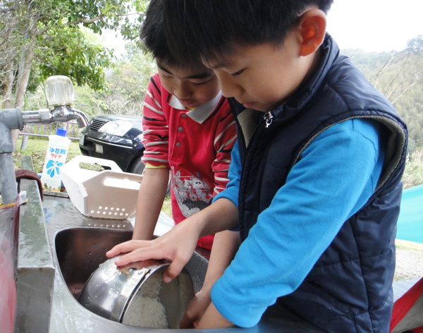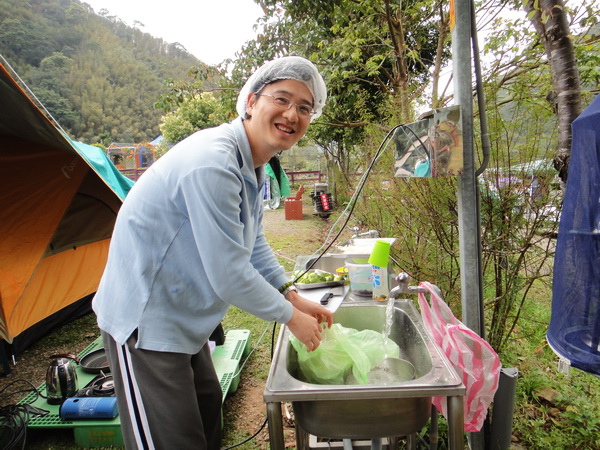 又到了午餐時間啦,二位好爸爸洗淨雙手,開始下廚準備,雖然在野外煮食,但衛生安全