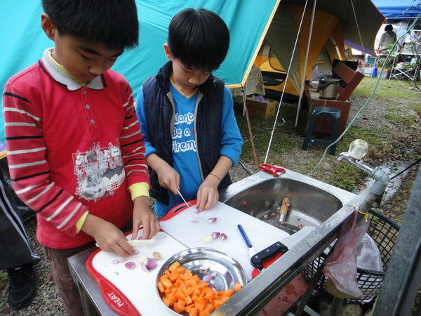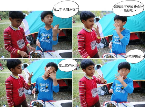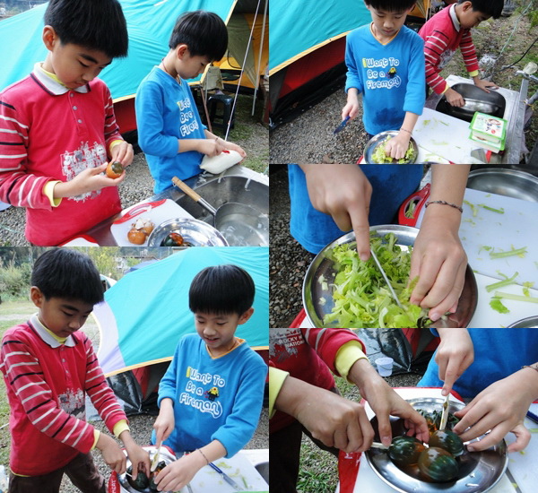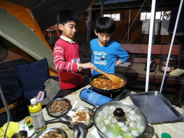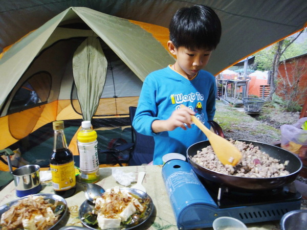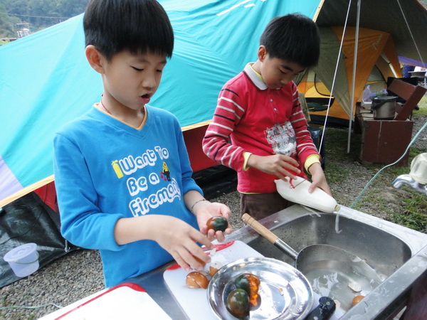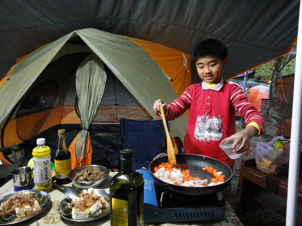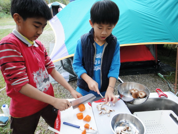 飯來張口的小孩們,學習自己下廚做菜...露營前幾天就先做預告,每人自選準備2道菜,