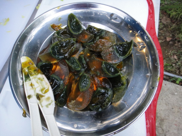 再來剝蒜頭,並且切碎備用.....這二個小傢伙竟然被蒜頭嗆到流眼淚.......><