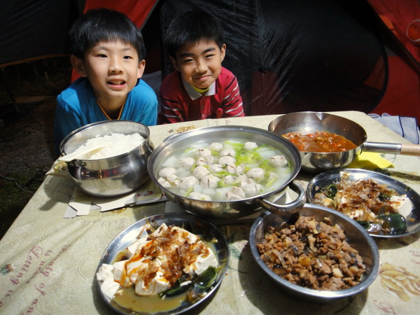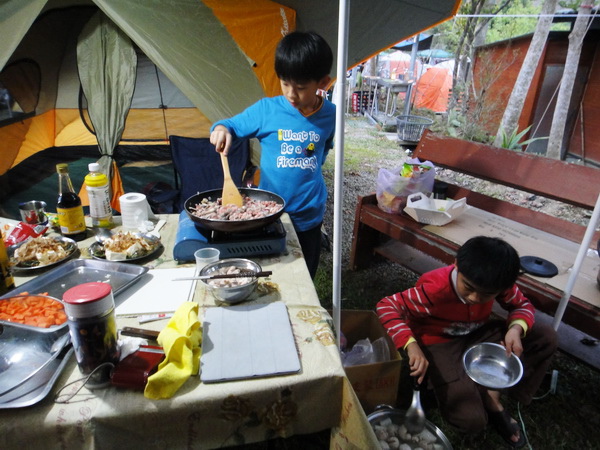 一切就定位後,開始準備今晚的晚餐啦....這次露營有個特別計劃,就是讓平常茶來伸手,