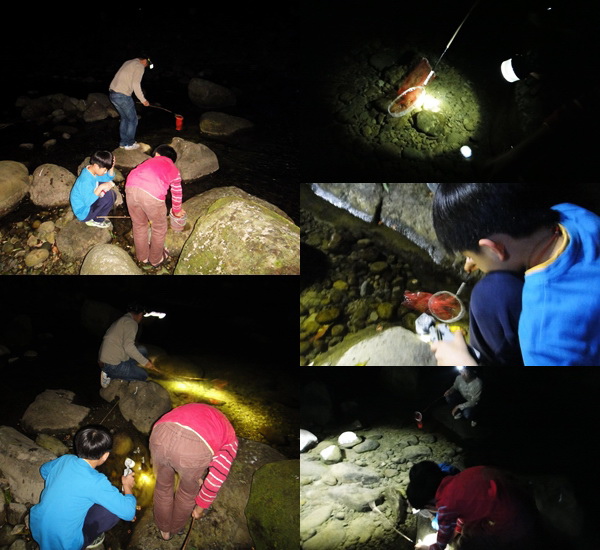 晚上八點時刻一到,小古率領旗下的哼哈二將,前往溪邊捉蝦抓魚去啦........