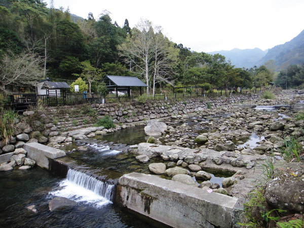 往營區的最下層,也是最裏面走就會看見油羅溪,溪邊旁有蓋了一整排提供遮棚、桌椅及