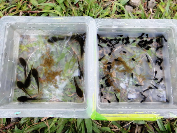 經過了二個小時賣力捕捉,哇....抓到了好多游來游去的...................蝌蚪