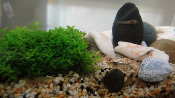 這些小小蝦現在正開心的在咱們家的魚缸裏悠游呢.....