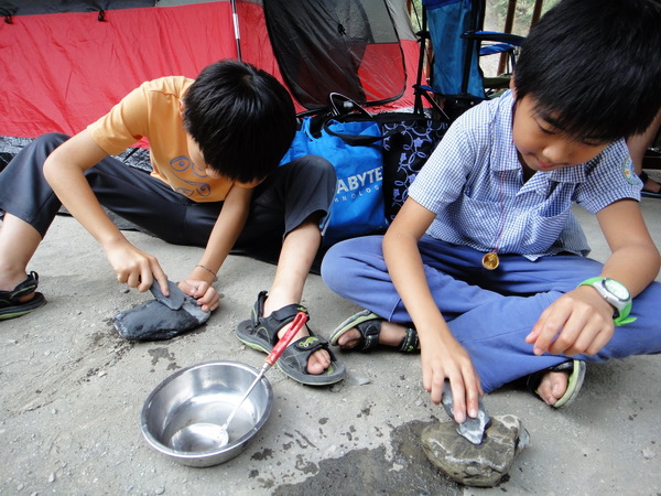 撿了許多石頭回來,一股傻勁努力磨呀~磨呀....是想在石頭裏磨出啥呀??