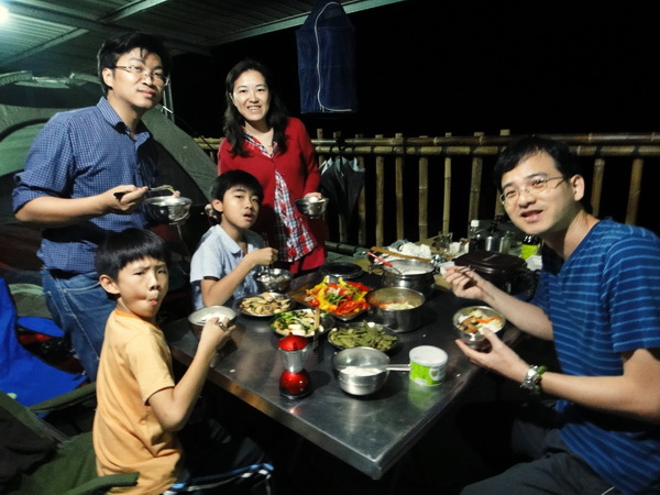 水泥營位,後方就是一大片溪谷,帳篷一搭妥,兩個小子就急忙奔向溪谷懷抱去了.....