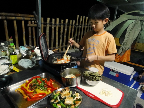 所以露營時,也是訓練兒子下廚做菜的最佳時機