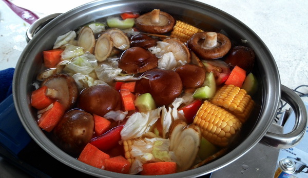 中午把剩餘的食材全部拿出來,又變身成一鍋健康營養的鮮蔬鍋啦.........