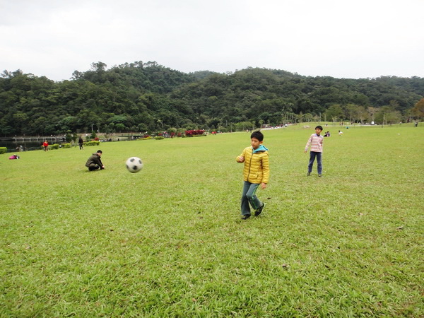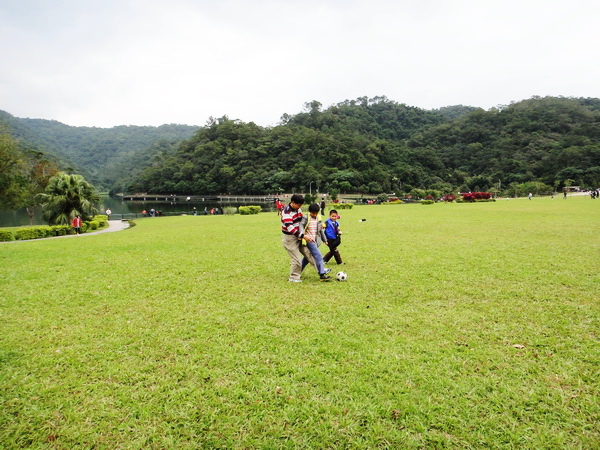 大人賞湖,孩子們則儘情在這片草地上奔跑踢球...............