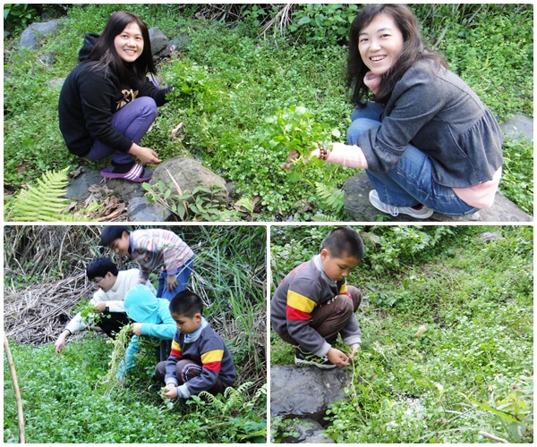 大家人手一把開始摘野菜,為咱們今晚的火鍋加菜.......