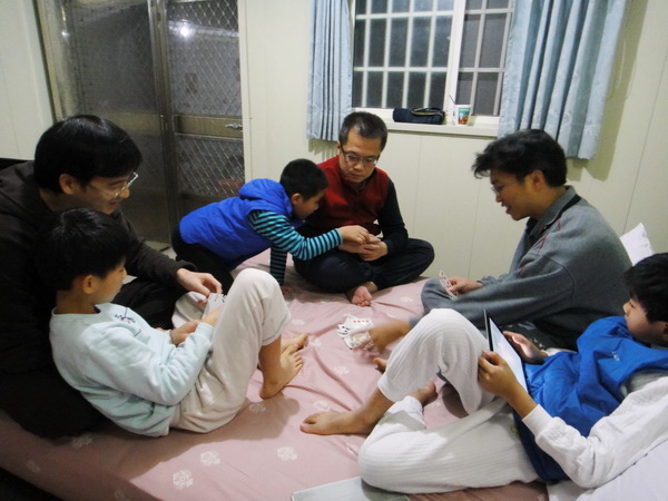 睡前的三家大老二撲克牌戰.....戰況激烈,最後一家烤肉二家香,小古輸了了