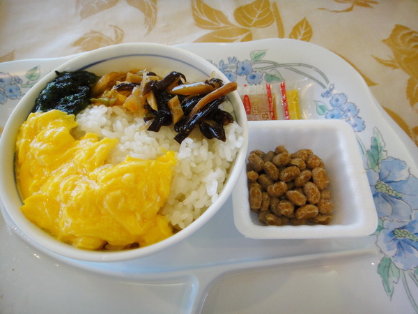 早餐是中西式自助餐,日本人早上不吃粥,他們吃白飯搭配納豆和一些小菜,這樣吃