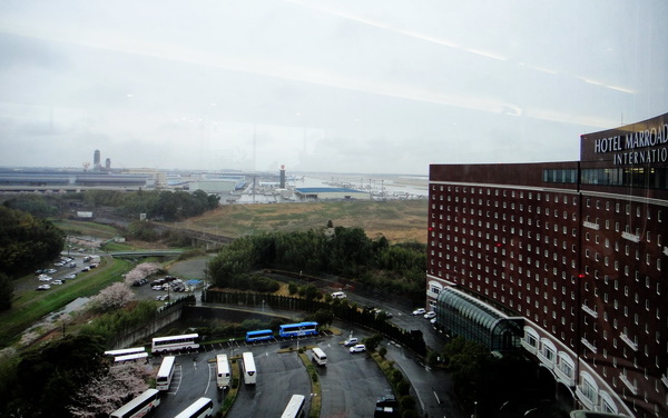 早上終於可以看清楚窗外的景色....半弧形的飯店及遠方的成田空港~~