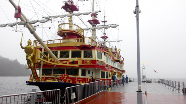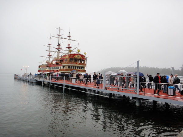 在湖上可眺望富士山美景, 今天要從[箱根町港]碼頭,搭乘仿十七世紀歐洲戰艦造型的
