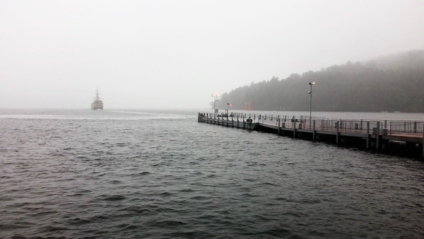 海賊船駛離了元箱根港,漸漸隱身在煙霧飄渺之中啦............