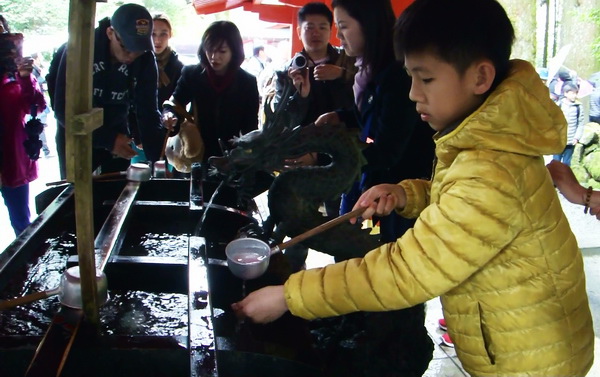 進入神社拜殿前,都會設置一個「手水舍」的洗手池,參拜前必須先洗淨雙手及漱口,