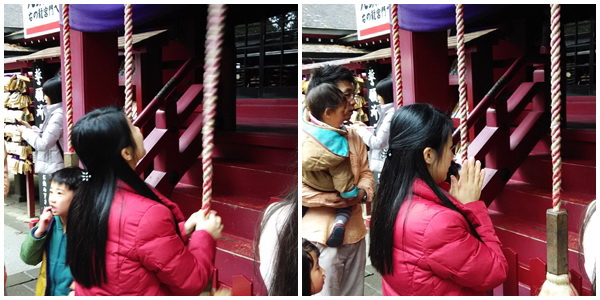 鈴鐺繩(給神明信號);接著鞠躬2次、拍手2次,拍完後雙手合十,誠心向神明說出願望,