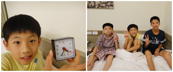 還帶上小鬧鐘,說隔天要自己起床 (每天早晨任鬧鐘響徹雲霄,只有他娘會醒來,