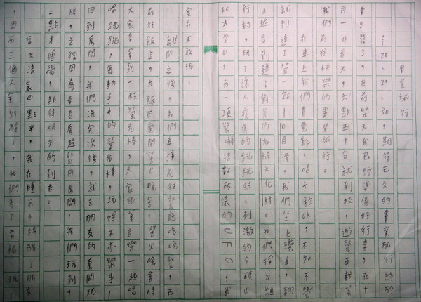 夜晚大家拿著手電筒,在黑漆漆偌大的校園裏巡走,新鮮又刺激,之後就在教室裏看