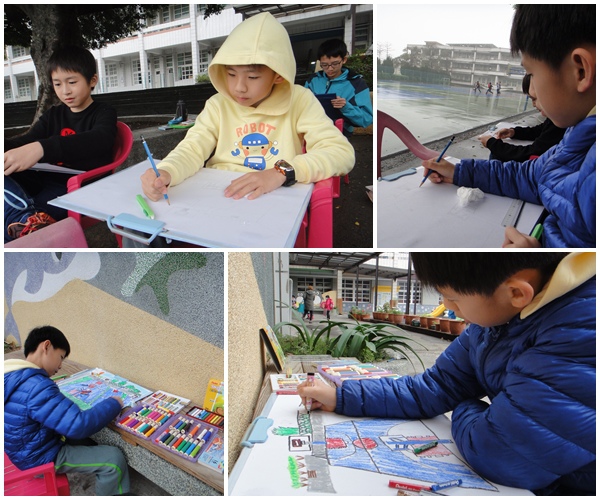 『畫我校園』畫畫比賽........在濕冷飄著細雨的校園中作畫,別有一番情境呀~