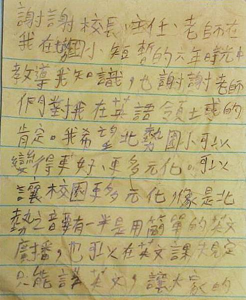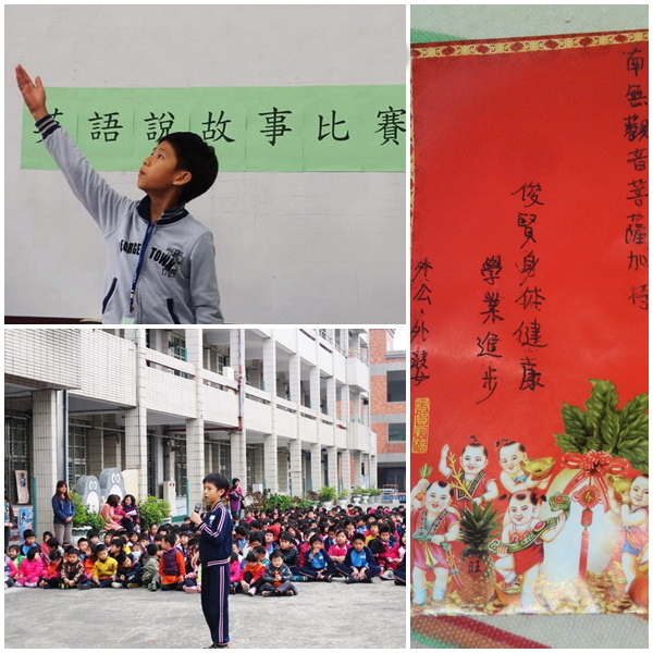 校長特別安排朝會時演說給全校同學聽....外婆也開心的送了一個紅包給賢鼓勵呢