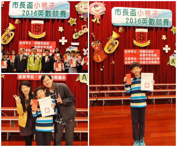 參加『2016桃園市長盃小桃子英數競賽』,參賽者約1500人,得到英語組 優勝獎,